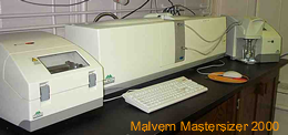 1. Malvern Mastersizer 2000: is a versatile laser diffraction-based analyzer capable of measuring the size distribution of particle emulsions, suspensions, and dry powders ranging from 0.02 to 2000 microns. Unparalleled accuracy and reproducibility is achieved with this system that includes both wet dispersion and dry dispersion units.